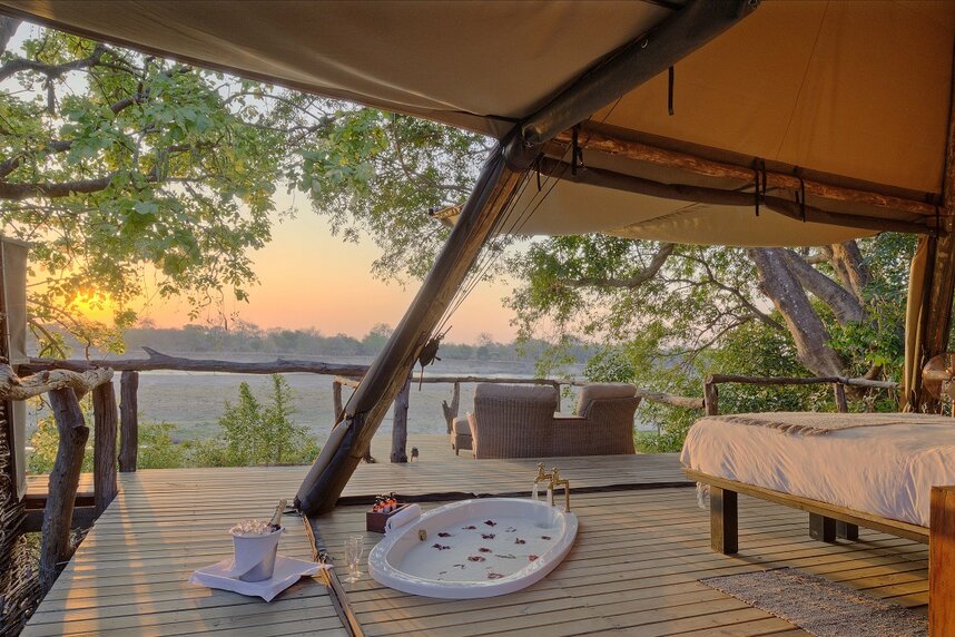 Die vier pyramidenartig erbauten Zelte bieten Ihnen durch die spektakuläre Bauweise einen unverwechselbaren Blick auf den Luangwa River - Dreh- und Angelpunkt für Sambias artenreiche Tierwelt. Jedes Zelt wurde auf Holzstelzen über dem Boden erbaut, sodass sich die einheimischen Tiere in der Umgebung besonders wohlfühlen und sich die Auswirkungen auf das Ökosystem in Grenzen halten.