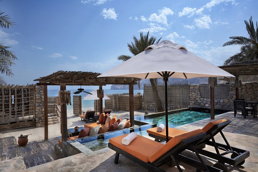Die 82 großzügigen Villen verfügen alle über einen privaten Pool sowie einen eigenen Butler. Als ultimatives Refugium präsentieren sich The Retreat (2 Schlafzimmer – 1.122 m²) und Beit Musandam – The Private Reserve (4 Schlafzimmer – 3.000 m²), die größte Privatresidenz innerhalb eines Hotels auf der Arabischen Halbinsel.