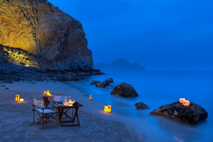 Die Halbinsel Musandam mit ihren traumhaften Buchten und wilden Fjorden ist vom restlichen Staatsgebiet des Oman durch die Vereinigten Arabischen Emirate getrennt und liegt an der Straße von Hormuz, wo die Felswände des Hajar-Gebirges steil in den Ozean fallen. Inmitten dieser dramatischen Naturkulisse liegt das Six Senses Zighy Bay an einem 1,5 km langen Sandstrand. Inspiriert von traditionellen, omanischen Dörfern wurde das Resort ausschließlich unter Verwendung von landestypischen Materialien errichtet. Die Marke Six Senses setzt auch hier auf ihren typischen Barfuß-Luxus, der perfekt mit der wildromantischen Umgebung harmoniert, und rundet das Ganze mit allen Annehmlichkeiten eines modernen Luxushotels ab. Kulinarische Höhepunkte für Feinschmecker servieren vier verschiedene Restaurants. Besonders spektakulär ist das Restaurant "Sense on the Edge" mit seiner exponierten Lage auf einem Felsplateau. Gänsehautmomente bei Sonnenuntergang sind hier garantiert. Regeneration pur verheißt der exzellente Six Senses Spa.