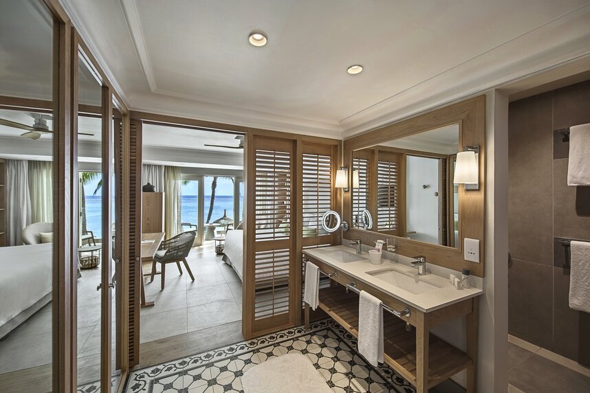 Die 226 Zimmer und Suiten sind stilvoll ausgestattet und verfügen über Terrasse oder Balkon. Die im Manor House und in den Villengebäuden verteilten Deluxe Seaview Zimmer (40 m²) liegen im ersten Stock, ebenerdig befinden sich die Premium Seaview Zimmer (50 m²). Die Villengebäude beherbergen weiterhin die Deluxe Beachfront (40 m², erster Stock) und Premium Beachfront Zimmer (50 m², ebenerdig) in erster Reihe mit direktem Blick oder Zugang zum Strand. Für Familien eignen sich die Familiensuiten (80 m²) oder die Premium Suiten mit Meer- oder Gartenblick (100 m²), welche aus zwei Zimmern mit Verbindungstür bestehen und somit zwei Schlaf- und Badezimmer offerieren.