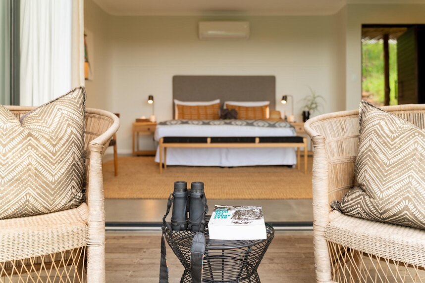 Mit nur 8 privaten Chalets ist es das ultimative, intime afrikanische Busch-Erlebnis für Sie und einen geliebten Menschen, Freunde oder die ganze Familie. Jede Suite ist in den dichten Elfenbeinwald eingebettet, so dass Sie das Gefühl haben, in den Baumkronen zu schlafen - in völliger Harmonie mit der Natur. Ein großes privates Deck und große Stapeltüren und Duschen im Freien ermöglichen endlose Sternenbeobachtungen oder Tagträume mit ununterbrochenem Blick auf das Tal.