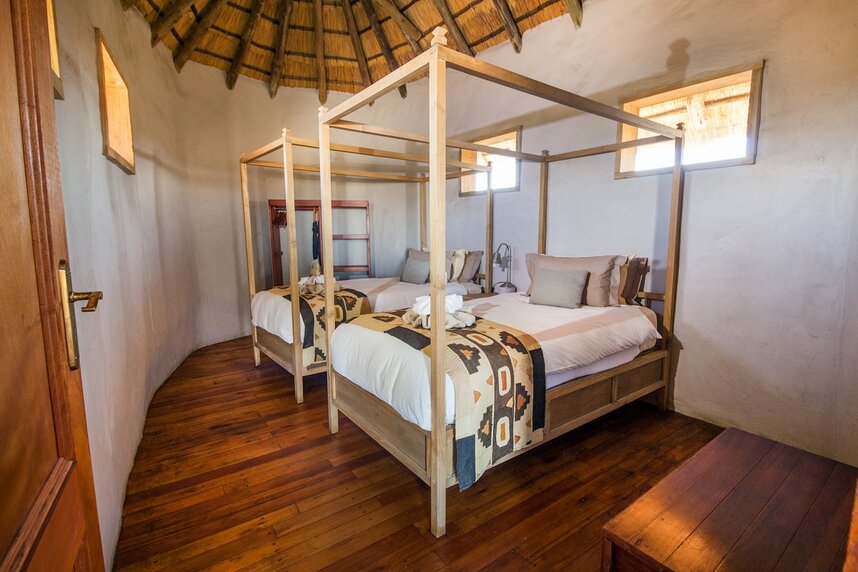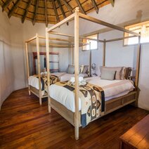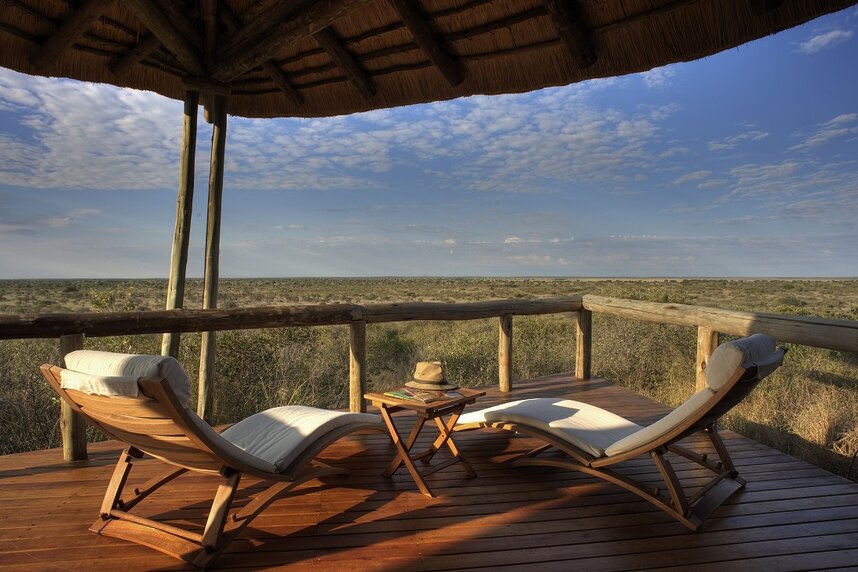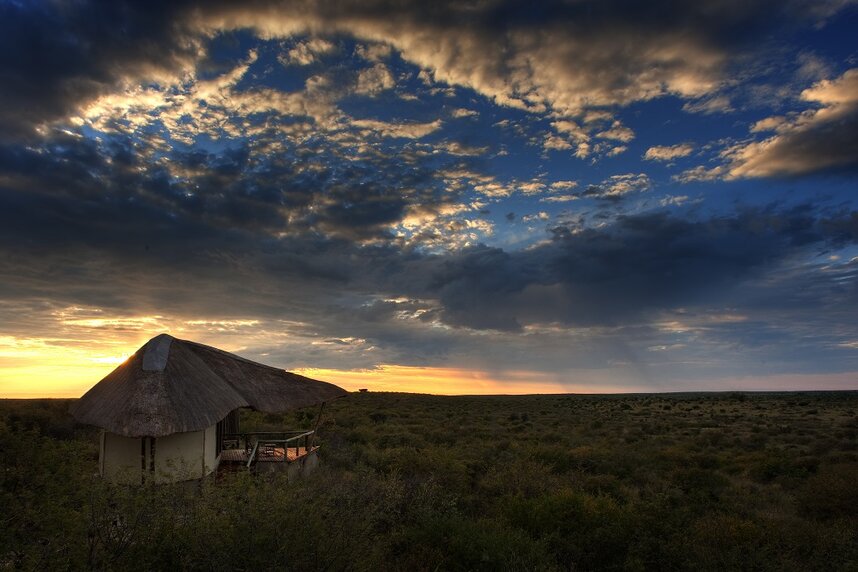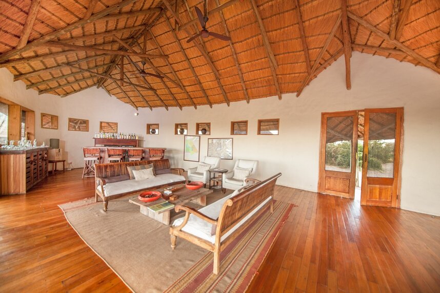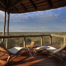 Das Camp bietet acht großzügige, reetgedeckten Chalets mit Dusche und Veranda. Sie sind wunderschön in die Natur interiert und auf Stelzen gebaut. Von der Terrasse aus können Sie bestens den spektakulären Sonnenaufgang in der umliegenden Steppenlandschaft bewundern.
