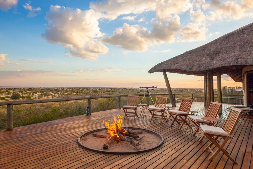 Am Rande der Tau-Salzpfanne befindet sich das stilvolle Tau Pan Camp mit Blick auf ein permanentes Wasserloch und den endlosen Horizont der Central Kalahari – dem größten Nationalpark der Erde. In diesem Tierparadies haben Tausende von Gnus, Oryxantilopen, Springböcke sowie Geparden und die großen Kalaharilöwen ihre Heimat gefunden. Im Hauptgebäude des Camp befinden sich der Speiseraum, eine Lounge mit Bibliothek und Bar. Auf dem Aussichtsdeck gibt es einen kleinen Swimmingpool, von dem aus man einen herrlichen Blick auf das permanente Tau Pan Wasserloch genießen kann.