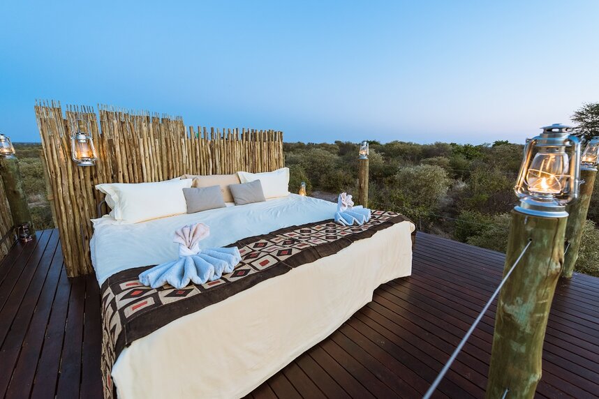 Anreise per Sportflugzeug von Maun in ca. 50 Minuten zur Tau Pan Landebahn, von hier kurzer Fahrzeugtransfer zum Camp.