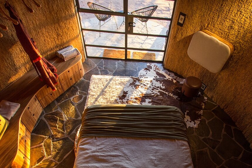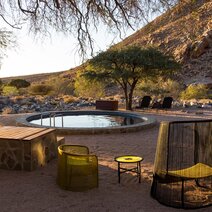 Das 2019 neu gebaute The Nest @ Sossus ist eine komplett aus Naturmaterial gebaute Privatvilla mit großzügigen und offenen Wohnbereichen, die ineinander übergehen und ein angenehmes Gefühl von Geborgenheit vermitteln. Der Architekt Porky Hefer verlieh ihr mit Rundungen und minimalistischem Design einen vollkommen eigenen Charakter. Die modern ausgestattete Villa verfügt über einen Pool und kokonartige Innenräume, darunter eine Bibliothek, eine offene Küche und vier en-suite Schlafzimmer mit runden Bullaugen-ähnlichen Fenstern, die zum Nesterscheinungsbild beitragen und einen spektakulären Blick in die Landschaft bieten. Inspiriert vom Nestbau der Webervögel, bietet es ein exklusives und luxuriöses Wohnerlebnis in dieser legendären, aber einsamen Gegend Namibias. Viele Wildtiere wie Leoparden, Geparden, Giraffen und Fleckenhyänen kommen an das nahe gelegene Wasserloch in dem privaten Namib Tsaris Naturschutzgebiet.