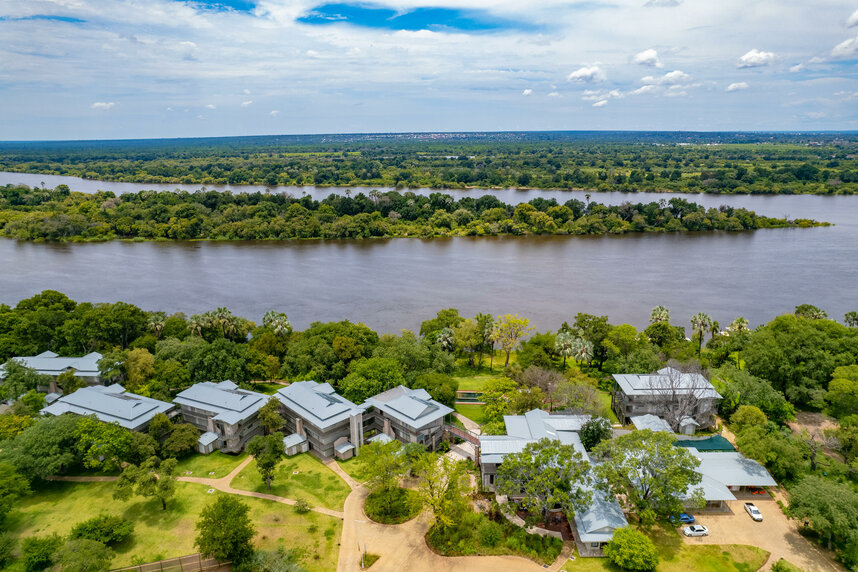 Das luxuriöse Hotel liegt malerisch eingebettet entlang des Ufers des mächtigen Zambezi-Flusses, nur etwa 4 km von den atemberaubenden Viktoriafällen entfernt. Die spektakuläre Lage ermöglicht Ihnen einen unvergleichlichen Blick auf das tobende Wasser, während Sie die ruhige Atmosphäre des Hotels genießen können. An ruhigen, klaren Tagen ist selbst das Donnern der Wasserfälle zu hören und die Gischt zu sehen.