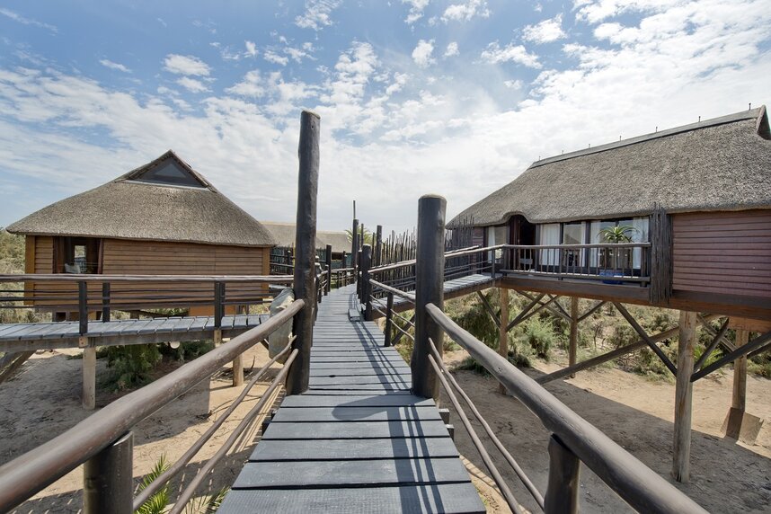 Einzigartig in jeder Hinsicht ist eine Übernachtung im The Stiltz in Swakopmund. Die Lage direkt am Atlantik in den Sanddünen und der vogelreichen Lagune an der Flussmündung ermöglichen tolle Ausblicke und romantische Sonnenuntergänge. Das Hotel ist nur 1 km vom charmanten Stadtkern entfernt, der mit zahlreichen Restaurants, diversen Aktivitäten und anderen Annehmlichkeiten lockt.