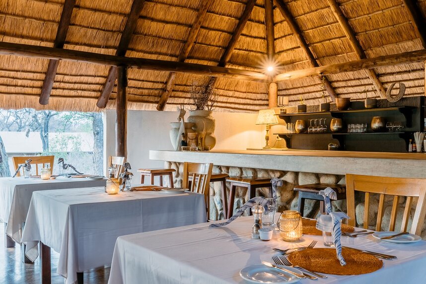 Genießen Sie die Eleganz und den Stil einer längst vergangenen Ära, ohne auf Komfort und Technik der Moderne verzichten zu müssen. Der offene Lounge- und Essensbereich bietet Blick auf den schönen Felsenpool – ein perfekter Ort, um sich zwischen den Wildfahrten zu entspannen. Während man den Klängen des Busches lauscht, wird das Abendessen bei schönem Wetter in der Boma serviert. Eine hervorragende Weinauswahl gibt es im Weinkeller der Lodge. Die Lodge befindet sich nur wenige Autominuten von der Thornybush Game Lodge entfernt, wo umfangreiche Spa-Behandlungen allen Gästen des Chapungu Tented Bush Camps zur Verfügung stehen.