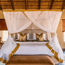 Die Badezimmer sind mit Doppelwaschbecken, einer Dusche und Eckbadewanne mit Blick in den Busch, eingerichtet. Eine extra Außendusche bietet Erfrischung zu den lyrischen Klängen des Bushveld-Chores.