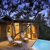 Der Gästebereich der Tsala Treetop Lodge besteht aus Lounges, einer Bibliothek sowie einem Speisesaal mit atemberaubenden Glasboden und Blick auf den Weinkeller. Auf den verschiedenen Holzdecks finden Sie sicher Ihren privaten Lieblingsplatz für ein romantisches Dinner unter dem Sternenhimmel. Ein weiteres Highlight ist der Ausblick vom Infinity- Pool. Das "Tsala Restaurant" sowie das "Zinzi Restaurant" verwöhnen Sie mit ausgezeichneter Küche. Außerdem besteht die Möglichkeit im nahegelegenen "Sage @ Hunter‘s" zu dinieren. Die aus natürlichen Materialien (Stein, Holz und Glas) erbaute Lodge verfügt über zehn luxuriös ausgestattete Baumhaus-Suiten und sechs komfortable Villen, die über Holzstege erreichbar sind. Sie verfügen über Klimaanlage, Fußbodenheizung, Minibar, Kaffee-/Teezubereiter, Safe WLAN und eigene Terrasse mit Jacuzzi.