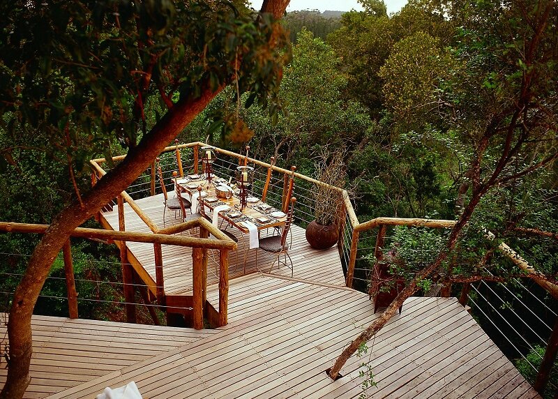 Das 32 Hektar große Anwesen der exklusiven Tsala Treetop Lodge befindet sich im Herzen der Garden Route etwas außerhalb von Plettenberg Bay. Sie gehört definitiv zu den ungewöhnlichsten Hotels der Gegend und ist eingebettet in die geschichtsträchtigen Tsitsikamma Urwälder, mit einem herrlichen Blick auf die umliegenden Outeniqua-Berge.