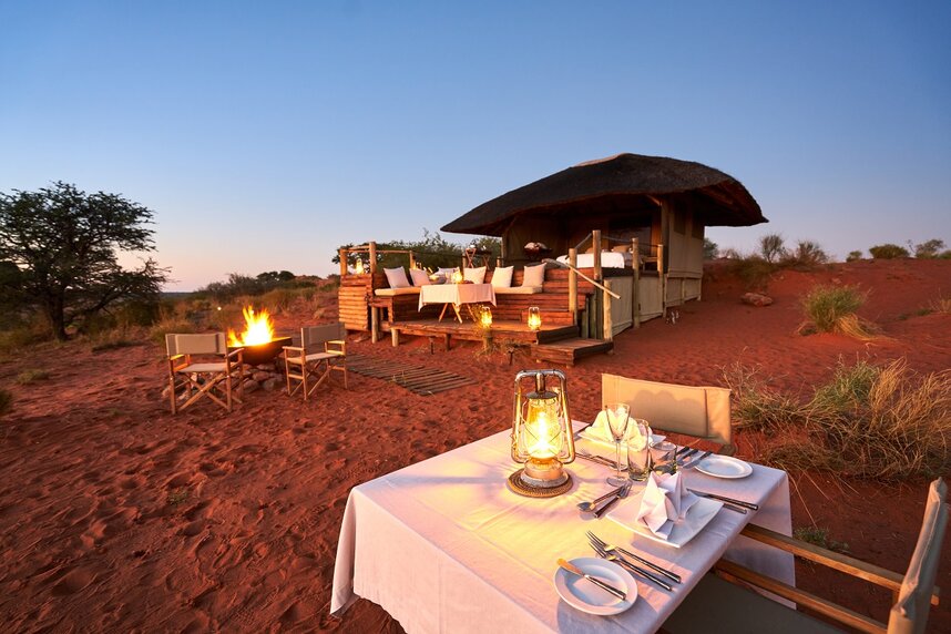 Das "The Malori Sleepout" gehört zur Hauptlodge "The Motse" und ermöglicht Gästen der Motse oder Tarkuni Lodge romantische Übernachtungen inmitten der Wüste. Ein Guide wird Sie abends zur etwas abseits gelegenen Suite des Malori Sleep-Outs fahren. Nach der Ankunft werden Ihnen beim Sundowner Snacks und kühle Getränke serviert und Sie können dabei die Aussicht auf die Grassteppe der Kalahari und das Farbenspiel der untergehenden Sonne besonders gut genießen. Nach einem köstliches Dinner können Sie den während des verbleibenden Abends und der Nacht die Atmosphäre und den Sternenhimmel auf sich wirken lassen!