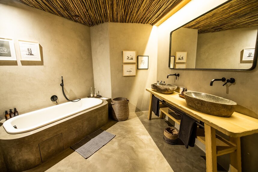 Neben den Zimmern der Besitzer sind fünf luxuriöse Suiten in der Lodge untergebracht. Sie sind ausgestattet mit en-suite Badezimmer und Außenduschen und sind in modern afrikanischen Stil erbaut.
