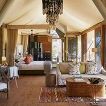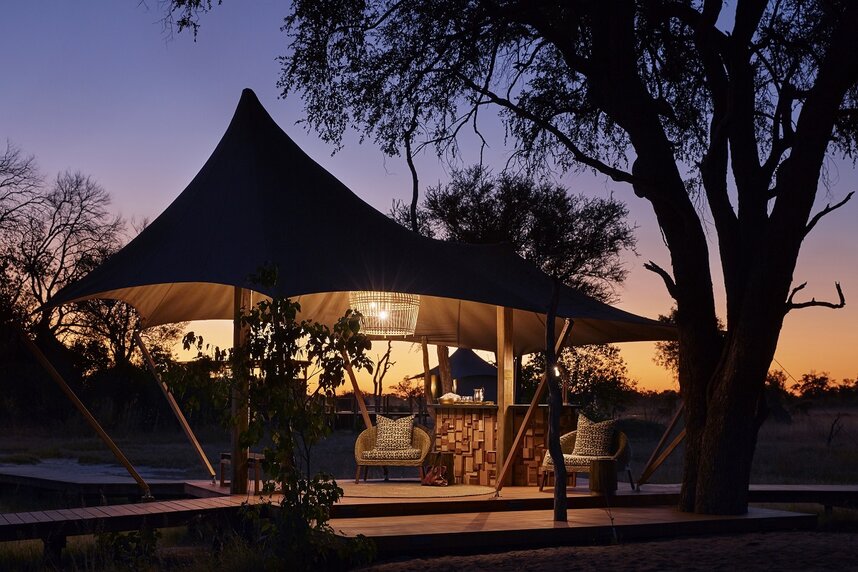 Im über 200.000 Hektar großen Khwai-Privatreservat fügt sich das Tuludi Camp inmitten der unberührten Wildnis in die zauberhafte Landschaft ein. Das Camp ist umgeben von smaragdgrünen Wäldern und Flussauen, die sich so weit das Auge reicht über die Weiten des Khwai-Privatreservates erstrecken und damit alle Stars der Safari-Show anziehen. Das Tuludi Camp selbst wurde im Baumhausstil errichtet und vermischt traditionelle Einflüsse mit zeitgenössischen Elementen und bildet damit eine exklusive Oase, in welche man nach einem ereignisreichen Safaritag gerne zurückkehrt.