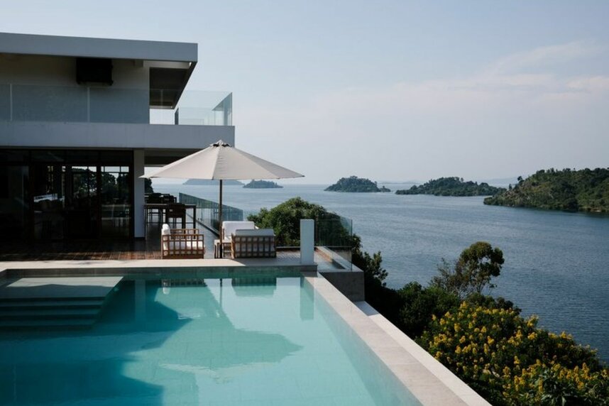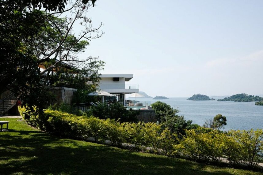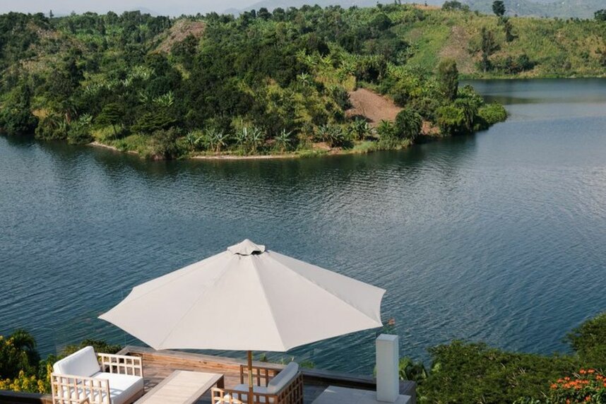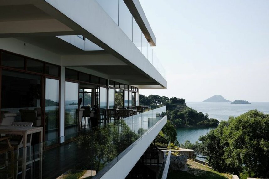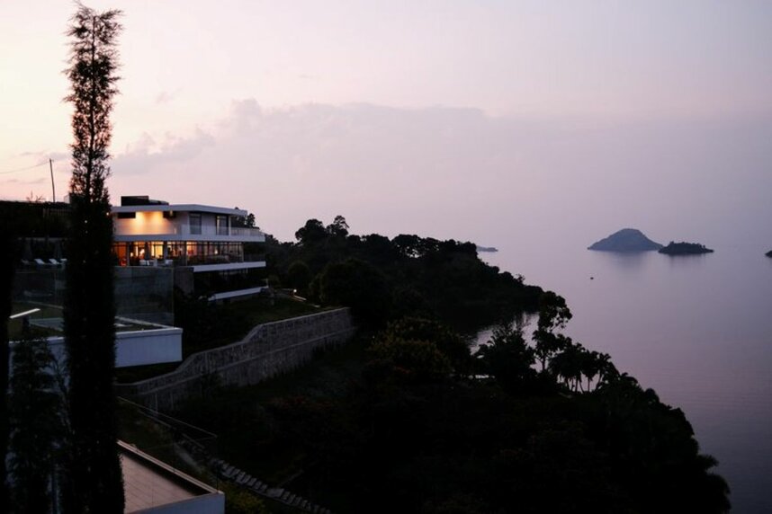 Die Lodge liegt auf einer Halbinsel des Kivusees, nur ca. 500m von einer Bucht entfernt, von welcher täglich die traditionellen Fischerboote ablegen.