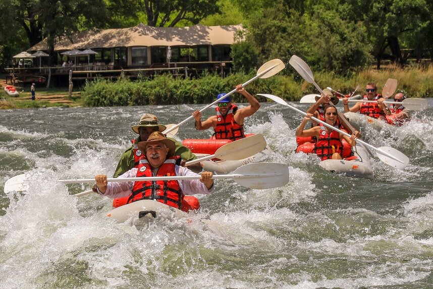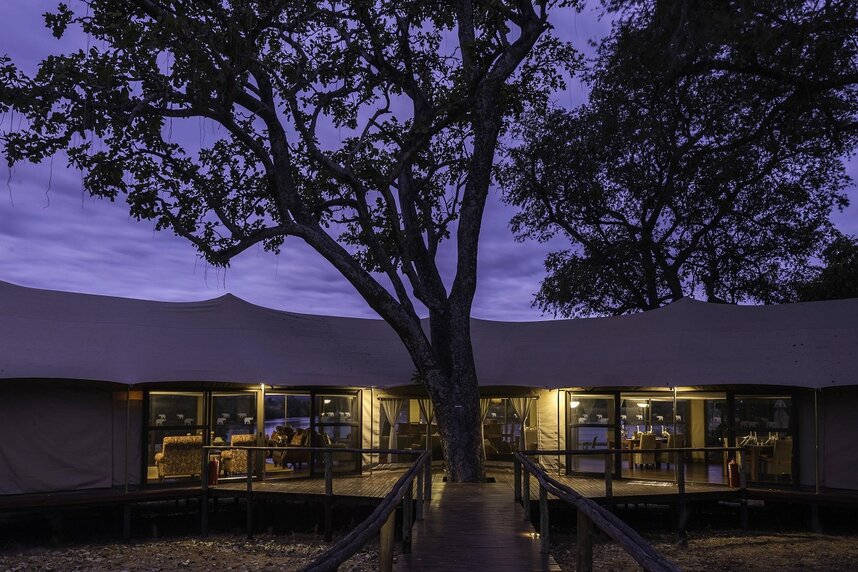 Im westlichen Teil des Zambezi Nationalparks, am Ufer des Zambezi-Flusses und unweit der Viktoria Fälle, liegt das Zambezi Sands River Camp. Durch seine Lage bietet es nicht nur die Möglichkeit herrliche Tier- und Landschaftsbilder zu generieren, sondern stellt auch den perfekten Ausgangspunkt für Ausflüge zu den naheliegenden Viktoriafällen dar. Denn neben den klassischen Safari Abenteuern wie Tages- oder Nachtpirschfahrten und Walking Safaris können Sie auch andere Aktivitäten wie Bootssafaris oder Kanufahren auf dem Zambezi-Fluss, eine Sundowner-Kreuzfahrt oder eine Tour zu den Viktoriafällen unternehmen. Im Hauptzelt befinden sich das Restaurant, die Lounge, eine Bar sowie eine überdachte Terrasse - hier genießen Sie das Abendessen unter freiem Himmel. Des Weiteren bietet das Camp seinen Gästen die Möglichkeit entspannende Massagen zu buchen.