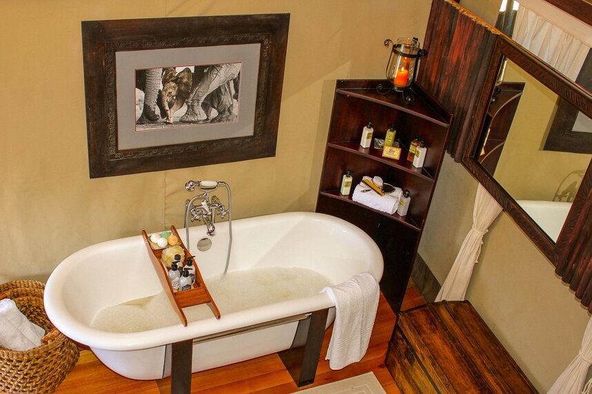 Das Zambezi Sands River Camp umfasst 10 sehr komfortable und geräumige Zelte mit je einer Größe von 74m², die durch 56m² große private Terrassen ergänzt werden. Jedes der Zelte verfügt über eine Lounge, eine Minibar, eine Kaffee- und Teestation, ein en-suite Badezimmer, eine Außendusche sowie über einen kleinen privaten Pool.