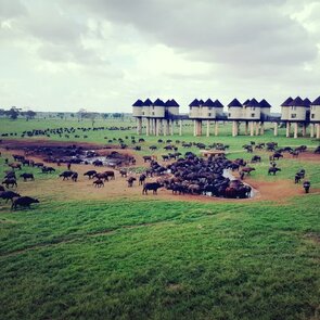 Etwa 170 km von Mombasa entfernt liegt der durch den East-Africa Highway und die Bahnlinie in zwei Teile geteilte Tsavo Nationalpark. Tsavo East und Tsavo West bilden zusammen mit fast 22.000 km² den größten Nationalpark Kenias. Bekannt ist er für seine große Elefantenpopulation und die rötliche Erde, deren Staub die Tiere rot erscheinen lässt. Tsavo West ist leichter zugänglich als der Osten und ein Hauptteil der bekannten Unterkünfte befinden sich daher in diesem Teil des Parks.