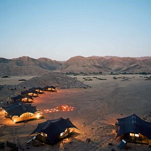 Im niederschlagsarmen Damaraland finden sich unendliche Horizonte, zerklüftete Felsformationen, ausgetrocknete Flussbetten in tiefen Schluchten und eine beeindruckende Tierwelt. Zahlreiche Tierarten haben sich an die karge Landschaft angepasst, allen voran die berühmten Wüstenelefanten. Die Skelettküste, der größte “Schiffsfriedhof“ der Welt, präsentiert sich den Besuchern mit rauen Küsten, einer der zahlreichsten Robbenkolonien weltweit und tiefen Canyons.
