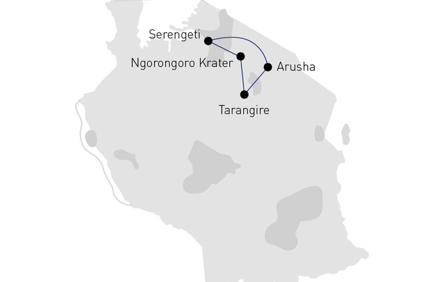 Im Sichtflug mit der luxuriösen Cessna Grand Caravan erleben Sie die Savanne der Serengeti, die Landschaft des Lake Manyara und die Ebenen von Tarangire. Sie residieren in luxuriösen Lodges und erleben ganz besondere Begegnungen und Facetten dieses Landes.