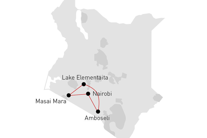 Entdecken Sie die goldenen Ebenen der Masai Mara, die eindrucksvollen Canyons des Rift Valleys, den majestätischen Kilimanjaro und erleben Sie die atemberaubende Tierwelt Kenias im Geländewagen.