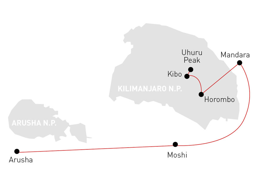 Transfer von Arusha oder dem Kilimanjaro Airport nach Moshi, wo Sie die Nacht vor dem Aufstieg verbringen werden.
