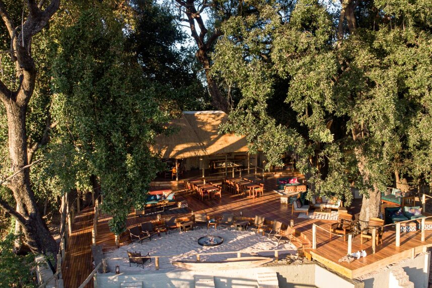 Eine spektakuläre Sicht auf das Okavango-Delta bietet der kurze Flug zu Ihrem nächsten Camp. Tauchen Sie ein in eine Welt aus Wasser, Wildnis und Stille. Statt Safarifahrten mit dem Jeep erkunden Sie die Umgebung auf traditionelle Weise: lautlos gleiten Sie im Mokoro (Einbaum-Kanu) durch enge Wasserwege. Genießen Sie während Ihres Aufenthaltes einen 20-minütigen Helikopterflug über diese weltweit einzigartige Naturlandschaft bei dem Sie die labyrinthische Wasserwelt aus der Vogelperspektive bestaunen – ein Traum für Fotografen und Naturliebhaber. Das Camp liegt auf einer abgelegenen Insel im permanent überfluteten Teil des Deltas und bietet traumhafte Ausblicke auf die Lagunenlandschaft. Nach einem erlebnisreichen Tag entspannen Sie am offenen Feuerdeck oder auf Ihrer privaten Veranda.