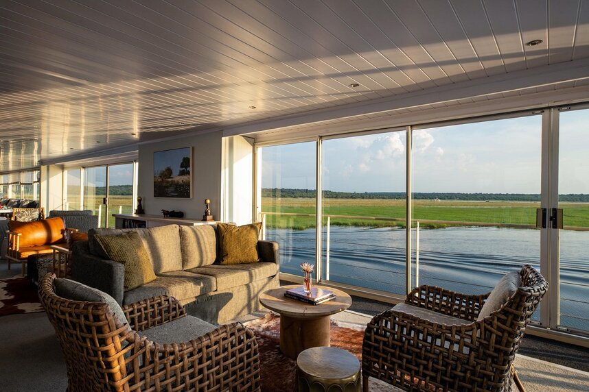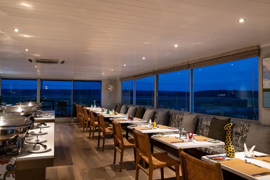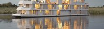 An Bord der Zambezi Queen erleben Sie eine Safari der besonderen Art. Das Schiff verfügt über drei Decks und 14 geräumige Suiten mit Dusche, Toilette, Klimaanlage und Balkon. Es navigiert auf dem Chobe, entlang des Nationalparks, bis zu 25 Kilometer flussaufwärts. Während Ihrer Fluss-Safari werden Sie im Rahmen der Vollpension mit feiner afrikanischer Küche und lokalen Getränken verköstigt.