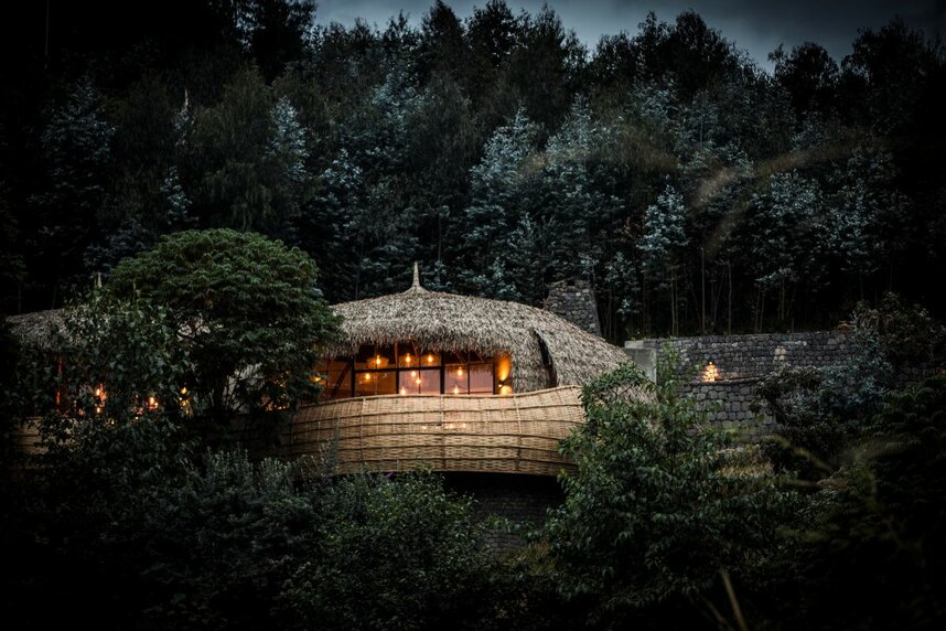 Die Lodge beherbergt maximal zwölf Gäste in sechs außergewöhnlich gestalteten Villen, deren Architektur von den traditionellen Königshäusern Ruandas inspiriert ist. Das Design kombiniert handgefertigte lokale Materialien mit modernem Komfort – jede Villa ist eine Oase der Ruhe mit Panoramablick, Kamin, luxuriösem Bad und privater Terrasse. Ein elegantes Restaurant, ein erlesener Weinkeller und ein herrlicher Wellnessbereich runden das exklusive Erlebnis ab.